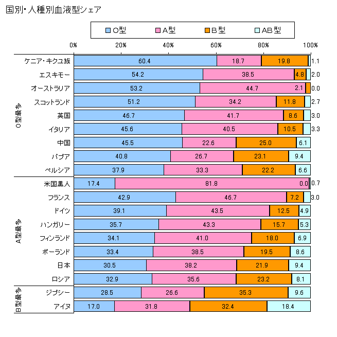 実は世界的に見るとB型率が高いのが日本。血液型診断がいい加減なことがここから分かるねw